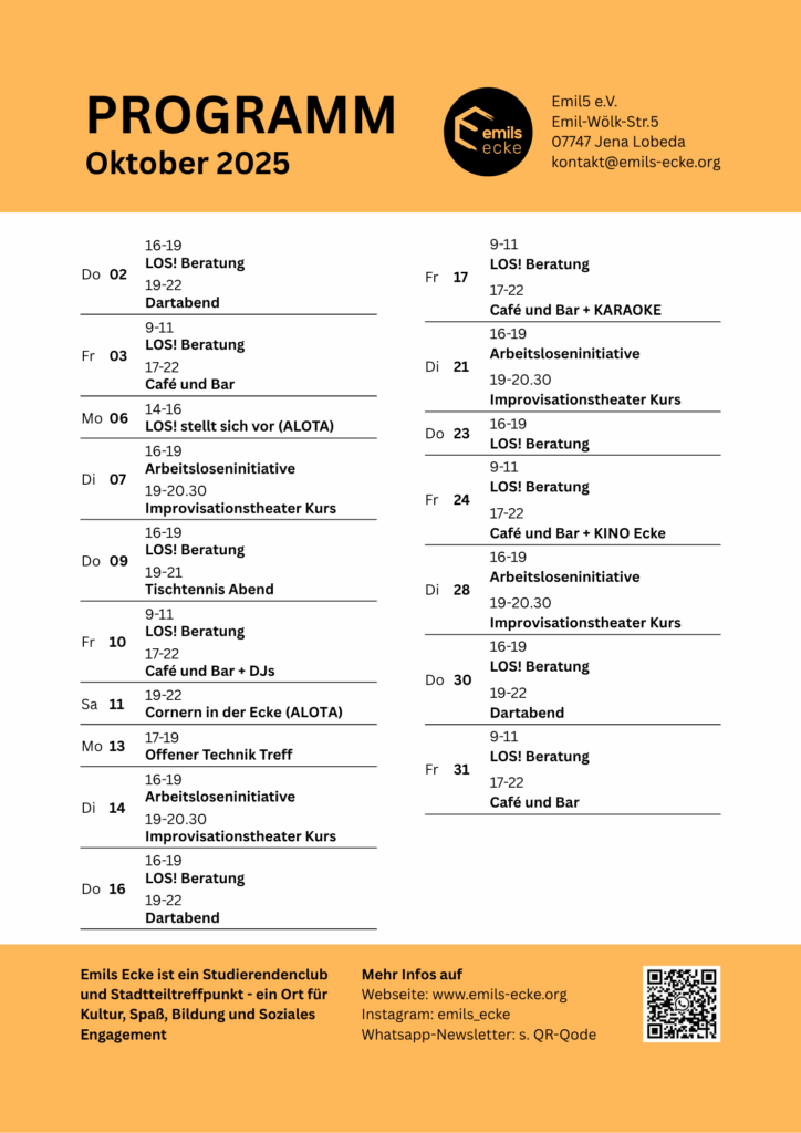 - Programm AugustTrotz Sommerpause finden einige Sachen doch statt. Aber Achtung: Barabende können spontan ausfallen, bitte dafür unseren Newsletter auf Whatsapp oder Instagramm checken! Ansonsten einen schönen Sommer allen und wir sehen uns regulär dann im September.